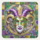 Adesivo Quadrado Máscara de Jester Mardi Gras Roxo Verde Dourado