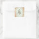 Inspirational Christian scripture square sticker depicts a light blue and brown vintage abstract background. It features Bible Verse Matthew 19:26, "With God all things are possible." _