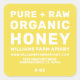 Etiquetas modernas, simples e mínimas de pote de mel com o texto puro mel orgânico cru e o nome de empresa na tipografia moderna, num fundo amarelo iluminante. Basta adicionar seu nome apiário, o nome do produto, o site da sua empresa, o endereço e o peso à etiqueta. Desenvolvido exclusivamente para apicultores pelo Happy Dolphin Studio. Se precisar de ajuda ou produtos correspondentes, entre em contato conosco em happydolphinstudio@outlook.com.