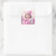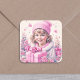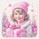 Adesivo Quadrado Menina Antiga Rosa com Caixa de Presente