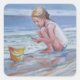 Adesivo Quadrado Menina beachcomber com balde amarelo