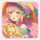 Adesivo Quadrado Menina de animação bonito segurando pizza