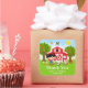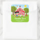 Adesivo Quadrado Menina de Cabelo Preto Agradece Aniversário Vermel