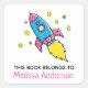 Adesivo Quadrado Menina Divertida do Foguete 'Este Livro Pertence'