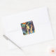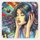 Adesivo Quadrado Menina ouvindo música em Fones de ouvido Psicodéli