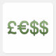 Adesivo Quadrado menos dinheiro Símbolos Libras, Euro Dólar America