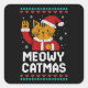 Cute festive cat in knitted look with Santa outfit and winter snow details. Perfect for holiday humor fans who enjoy cozy seasonal themes.