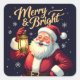 Adesivo Quadrado Merry Bright Santa Holding Lantern Illustration