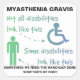Miastenia Gravis Awarness *Todos os itens estão protegidos por proteção de marca registrada e direitos autorais. * Estes são itens de angariação de fundos para a Miastenia Gravis Awarness. Meu marido e eu desenvolvemos esta design quando ele sofre de Myasthenia Gravis. Era nossa esperança que através dessa simples design pudéssemos espalhar a consciência de MG. Estamos doando todos os lucros para a Myasthenia Gravis Association of America, Inc.