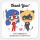 Adesivo Quadrado Miraculosa Ladybug e Cat Noir Aniversário Obrigado