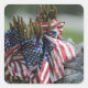 A mochila de um soldado do Exército transborda com pequenas bandeiras americanas em Arlington National C.