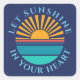 Um modelo de foto redondo sobre fundo azul escuro. Clique em personalizar para alterar o pôr do sol para a sua própria imagem, e o texto para si próprio, ou comprar-o como está.