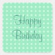 Modelo de texto Feliz Aniversário em verde menta com pontos polka rústicos Adesivo quadrado elegante e moderno.