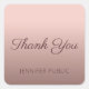 Sticker quadrado arredondado clássico elegante com modelo de texto digitado 'Obrigado' cor dourado rosa.