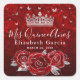 Crie seus próprios adesivos de modelo elegantes para personalizar os brindes para uma festa de aniversário, casamento ou outro evento especial com tema vermelho e prata. O design floral único ilustrado por Raphaela Wilson retrata rosas vermelhas em aquarela vintage acentuadas em prata, uma coroa / tiara de princesa e confetes de borboletas cintilantes. Adicione seu nome, monograma, data ou outro texto personalizado, e sinta-se à vontade para alterar a caligrafia branca e a tipografia moderna para outro estilo de sua escolha. Precisa de vermelho e dourado em vez de prata e vermelho? Se você personalizar ainda mais esses adesivos de modelo de favor, verá opções para folhas de folhagem dourada metálica falsa, borboletas e até gráficos svg para a coroa e confetes que você pode mudar para qualquer cor. Esses adesivos quadrados personalizados e legais tornam rótulos de velas simples e bonitos em casamentos de rosas, festa de aniversário de quinceanera vermelha, festa de 16 anos de princesa de contos de fadas, chá de noiva, chá de bebê ou outros eventos. Embora o texto nesses adesivos de quinceanera prateados e vermelhos diga "Mis Quince Anos", você pode reformulá-los para "amor e gratidão" e usá-los como adesivos de agradecimento para brindes, etiquetas de presente, envelopes e outros itens de papelaria. Categoria: adesivos de casamento de rosa vermelha personalizados