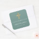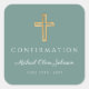 Modern Green Religious Cross Boy Confirmation Square Sticker.
