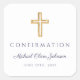 Modern Navy Blue Religious Cross Boy Confirmation Square Sticker.
