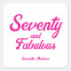 Adesivo Quadrado Modern Seventy and Fabulous Pink 70th Birthday