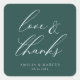 Adesivo Quadrado Moderno Elegante Script Teal Love & Obrigados