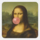 Adesivo Quadrado Mona Lisa Piscando Goma-Bolha Rosa
