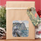 O belo e único trabalho de arte apresenta o Cliff of Aval de Monet, Etretat como um fundo de um cavalo negro de aquarela com cobertura de retrato de coroa floral.