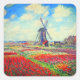 Vinhetas com a pintura de Claude Monet em flores e moinhos de vento. Lindos e coloridos campos de tulipas vermelhas, cor-de-rosa e amarelas ao lado de um moinho de vento e casa na Holanda. Um presente de Monet excelente para fãs do impressionismo e da arte francesa.