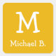 Adesivo Quadrado Monograma branco e nome da mostarda amarela