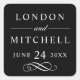 Adesivo Quadrado Monograma de Casamento Preto Clássico Elegante
