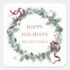 Adesivo Quadrado Monograma de folhagem de inverno com fita vermelha