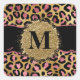 Adesivo Quadrado Monograma de impressão leopardo rosa e dourado