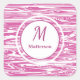Adesivo Quadrado Monograma de Padrão Branco Rosa Moderno Personaliz
