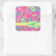Adesivo Quadrado Monograma de Padrão de Paisley Moderno de Fuchsia