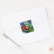Adesivo Quadrado Monograma de pássaros verde-azul colorido
