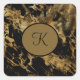 Monograma deste mármore preto e dourado agata adesivo quadrado moderno, selo de envelope.