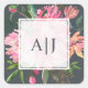 Adesivo Quadrado Monograma Floral Botânico de Peônia Rosa Rubi