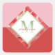 Adesivo Quadrado Monograma + Vermelho e Verde de Morango + Rosa
