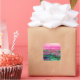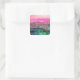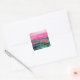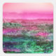Esta é uma colagem enevoada, trivial, que representa montanhas e enigmas do deserto, uma paisagem sonhadora em verde, azul, roxo e rosa.