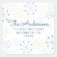 Estas etiquetas de endereço de retorno quadrado impresso personalizadas apresentam uma vibração retrorreflectora divertida com um design de estilo Moderno do século Médio. asteriscos atômicos ou formas de flocos de neve decoram esses adesivos em tons de azul e amarelo com seu nome e endereço em azul real. Use os campos modelo para personalizar facilmente esses campos com suas informações.