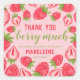 Adesivo Quadrado Muito Obrigado Berry Strawberry Birthday Pink
