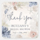 Este é um autocolante de agradecimento elegante e moderno para o chá de noiva com tema marítimo para celebrar a noiva! Usando um design de belas conchas de praia, coral azul e estrelas-do-mar, edite facilmente o texto conforme necessário usando o modelo fornecido e celebre as próximas núpcias da noiva em estilo oceânico elegante.