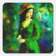 Uma pintura gerada por IA de uma mulher com um vestido verde e chapéu