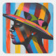 Adesivo Quadrado Mulher na silhueta colorida de bater chapéu
