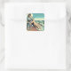 Adesivo Quadrado Mulher retrô de 1950 sentada na praia