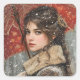 Uma renderização digital de uma pintura altamente realista de uma mulher em um vestido vitoriano do lado de fora em condições de neve.