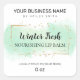 Uma etiqueta verde pastel, de tinta aquosa, para um batom caseiro, brilho ou esfregaço com um sabor e sensação de resfriamento, minúsculo, mentol.