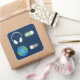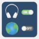 Legal design para amantes de música, perfeito para quem gosta de ouvir música. Quando a música continua, o mundo sai. Fones de ouvido prateados e ilustrações da Terra azul e verde sobre fundo azul. Realce seu estilo e espaço com esta arte legal!