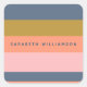 Este adesivo na moda quadrado apresenta listras modernas em tons sujos de marinho, pêssego, coral, rosa e ocre. Perfeito para adicionar um toque personalizado a material escolar, marca comercial ou decoração de eventos. A sua paleta de cores ousada, mas natural, torna-a simultaneamente tendenciosa e versátil para qualquer ocasião.