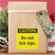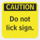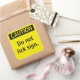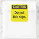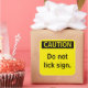 Um pequeno adesivo de aviso de paródia. Não clique no sinal. Adicione algum humor ao seu programa de saúde e segurança ambiental.