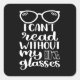 Adesivo Quadrado Não consigo ler sem meus óculos