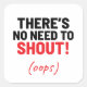 Adesivo Quadrado Não há necessidade de gritar Piadas engraçadas